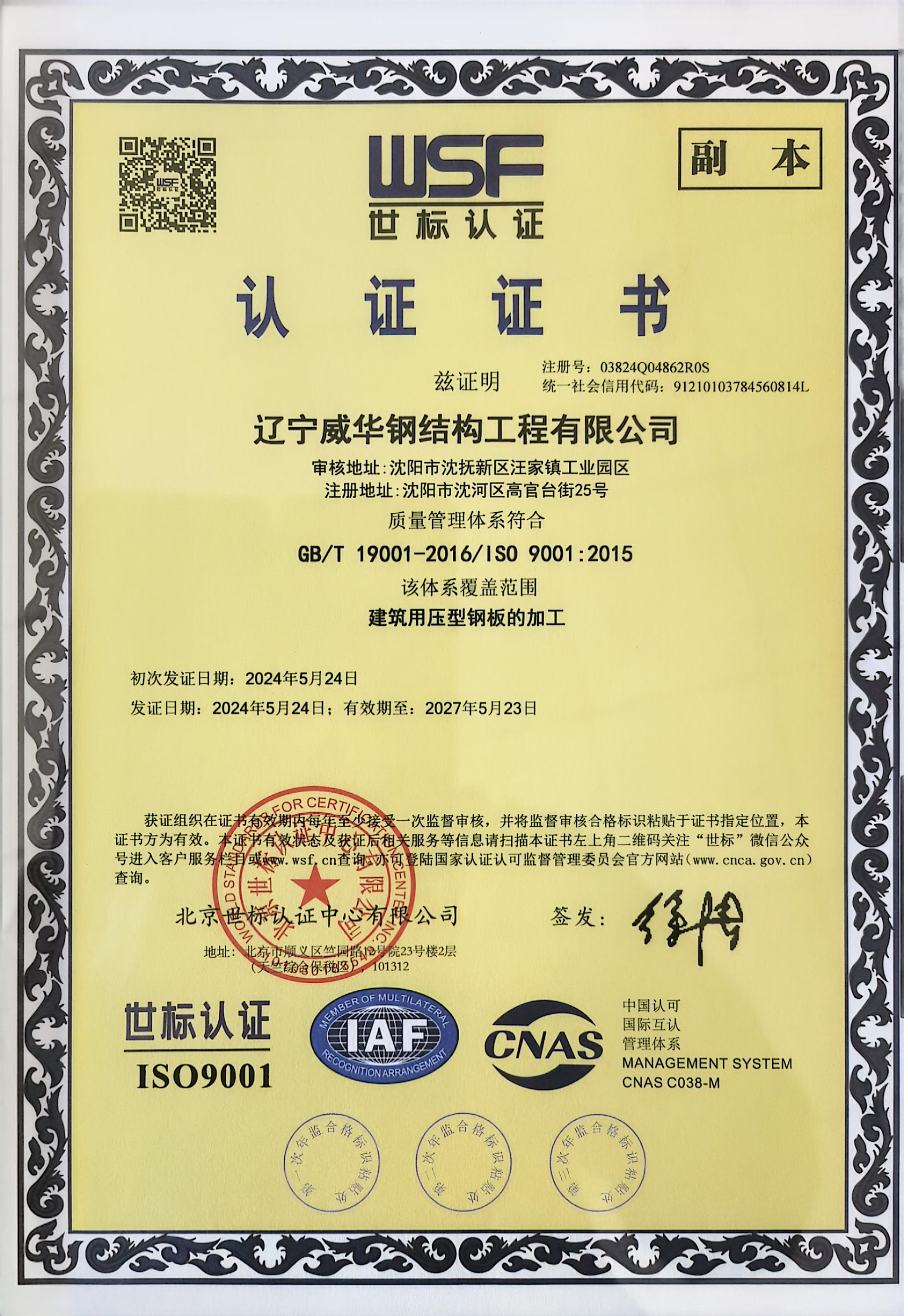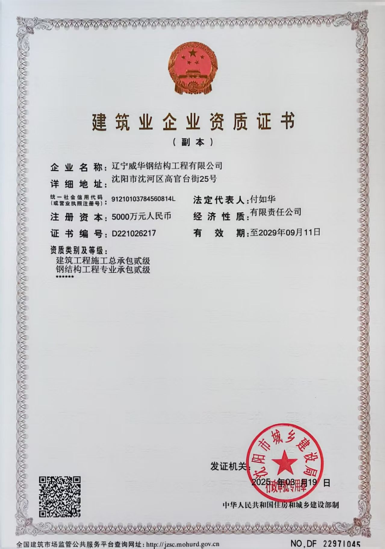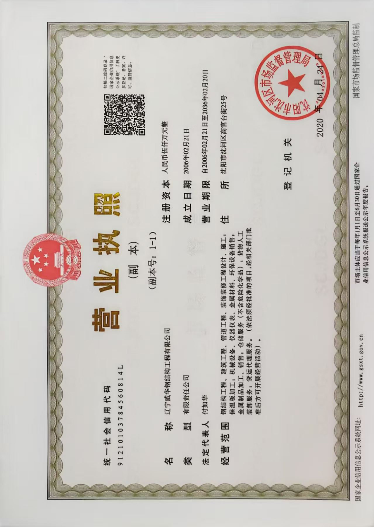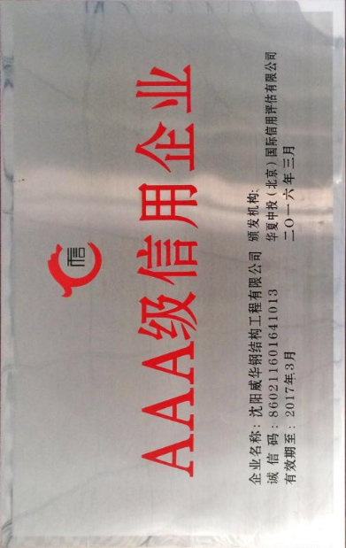辽宁威华钢结构工程有限公司有着强大的市场营销网络和技术研发中心,凭借人才、设计、生产优势、完善配套的服务体系和诚实守信的经营理念,不断创造出质优价廉的产品满足市场需求。公司信守“质以建业,诚以立信”经营理念的同时,使威华公司形成了负责任、守信誉、重质量的外在形象,给公司创造了广阔的发展空间。威华公司在关注国内外钢结构发展的同时,大胆探索对钢结构材料的应用,致力打造威华公司钢结构的强势品牌。并始终以“质量放心,服务称心”为服务宗旨,衷心服务于每一位用户。